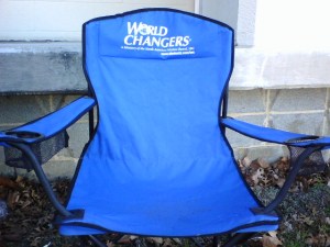 A friend and I were working on campus one day and I saw this chair sitting at someone’s apartment. I thought it was quite odd and here is why. How can someone change the world or be a “World Changer” sitting in a chair? I guess they are so busy changing the world they have to rest occasionally. This could be a point of discussion concerning “felt needs ministry” only. For anyone setting out to change the world let us be reminded that Jesus Christ changes the world through the preaching of the Gospel. “As you go, Preach.”