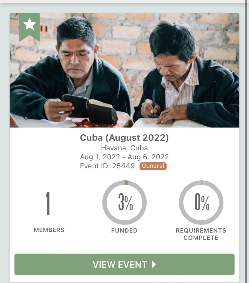 I don’t ask this out of need but rather would anyone like to participate in praying and giving for my upcoming mission trip to Cuba for the purpose of training indigenous leaders to reach their people with the gospel.